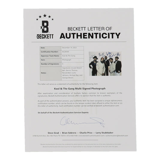 "Kool & The Gang" 8x10 Photo Band-Signed (Beckett) by (6) with Robert Bell, Dennis Thomas, Ronald Bell, Curtis Williams
