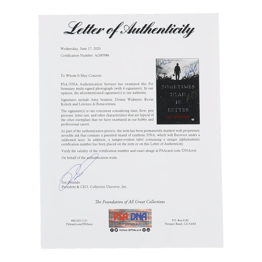 "Pet Semetary" 11x17 Movie Poster Photo Signed (PSA) by Amy Seimetz, Dennis Widmyer, Kevin Kolsch & Lorenzo di Bonaventura