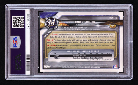 Arbert Cipion Signed 2018 Bowman Chrome Draft #BDC19 RC (PSA) Rookie Card