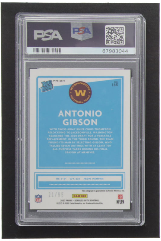 Antonio Gibson 2020 Donruss Optic Rated Rookies Autographs Holo #185 Serially Numbered #21 / 99 - (PSA) 10 - Rookie Card
