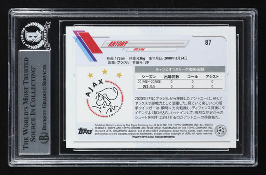 Antony Signed 2020-21 Topps Chrome UEFA Champions League Refractors #87 RC - Autograph Graded Beckett (BGS) 10 | Rookie Card