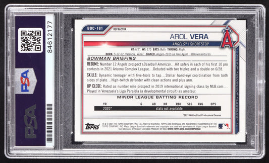 Arol Vera Signed 2021 Bowman Chrome Draft Refractors #BDC181 RC (PSA | Autograph Graded PSA 10) Rookie Card