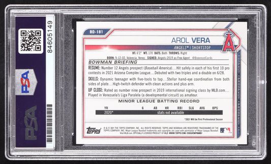 Arol Vera Signed 2021 Bowman Draft 1st Edition #BD181 RC (PSA | Autograph Graded PSA 10) Rookie Card