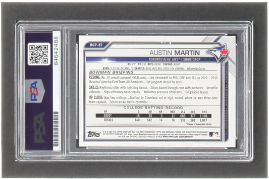 Austin Martin Signed 2021 Bowman Chrome Prospects #BCP87 RC (PSA) - Rookie Card | Autograph Graded (PSA) 10