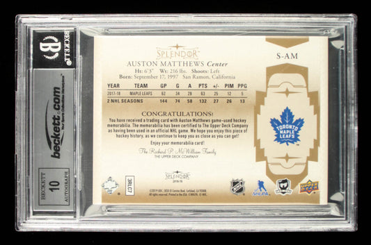 Auston Matthews Signed 2018-19 Upper Deck Splendor #S-AM - Serially Numbered #03 / 36 | Autograph Graded Beckett (BGS) 10