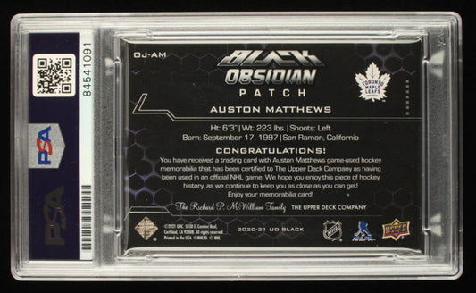 Auston Matthews Signed 2020-21 UD Black Obsidian Jerseys Patch Purple #OJAM #25/25 (PSA)