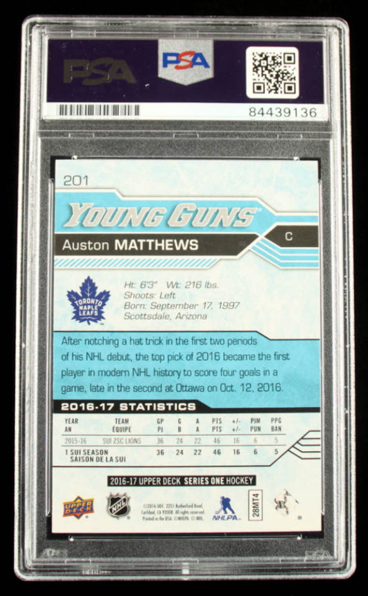Auston Matthews Signed 2016-17 Upper Deck #201 Young Guns - Inscribed "2017 Calder" YG (PSA) Rookie Card