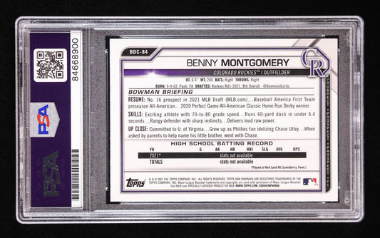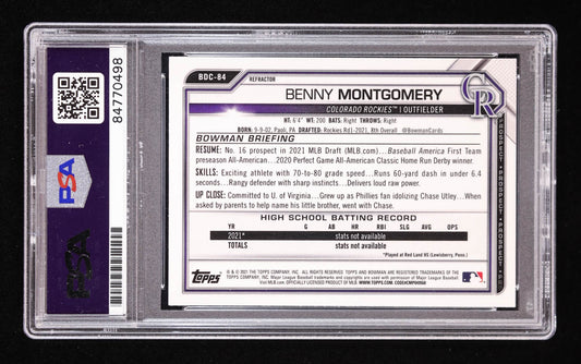 Benny Montgomery Signed 2021 Bowman Draft Chrome Refractor #BDC84 RC (PSA | Auto 10) Rookie Card | Autograph Graded 10
