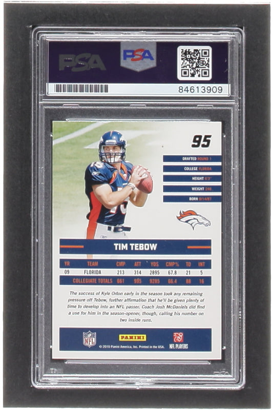 Tim Tebow Signed 2010 Donruss Rated Rookies #95 RC (PSA | Auto Grade 10) - Rookie Card