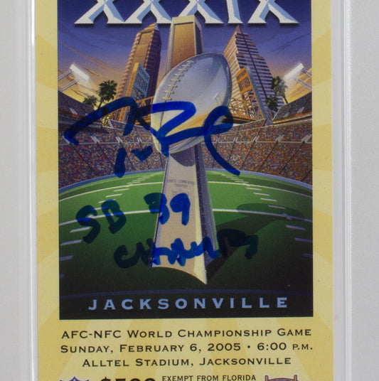 Tom Brady Signed 2005 Super Bowl XXXIX Full Ticket Inscribed "SB 39 Champs" (PSA 9) Autograph Graded PSA 10