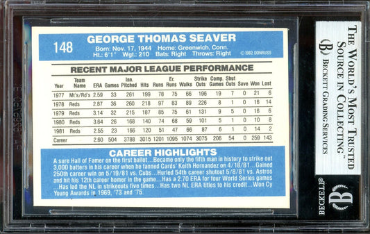 Tom Seaver Signed 1982 Donruss Baseball Card #148- BGS Authentic