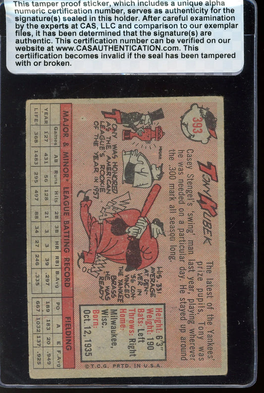 Tony Kubek Signed 1958 Topps Card #393 - CAS Authentic