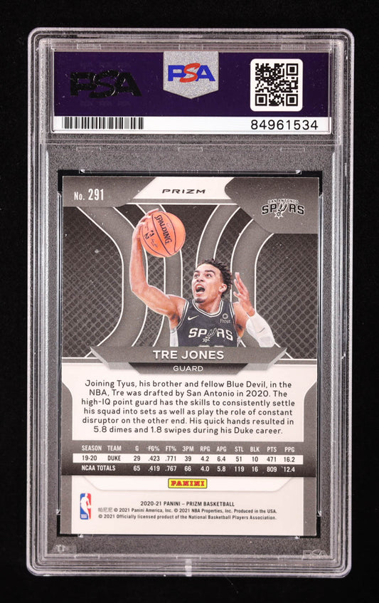 Tre Jones Signed 2020-21 Panini Prizm Green #291 RC (PSA | Auto Grade 10) Rookie Card