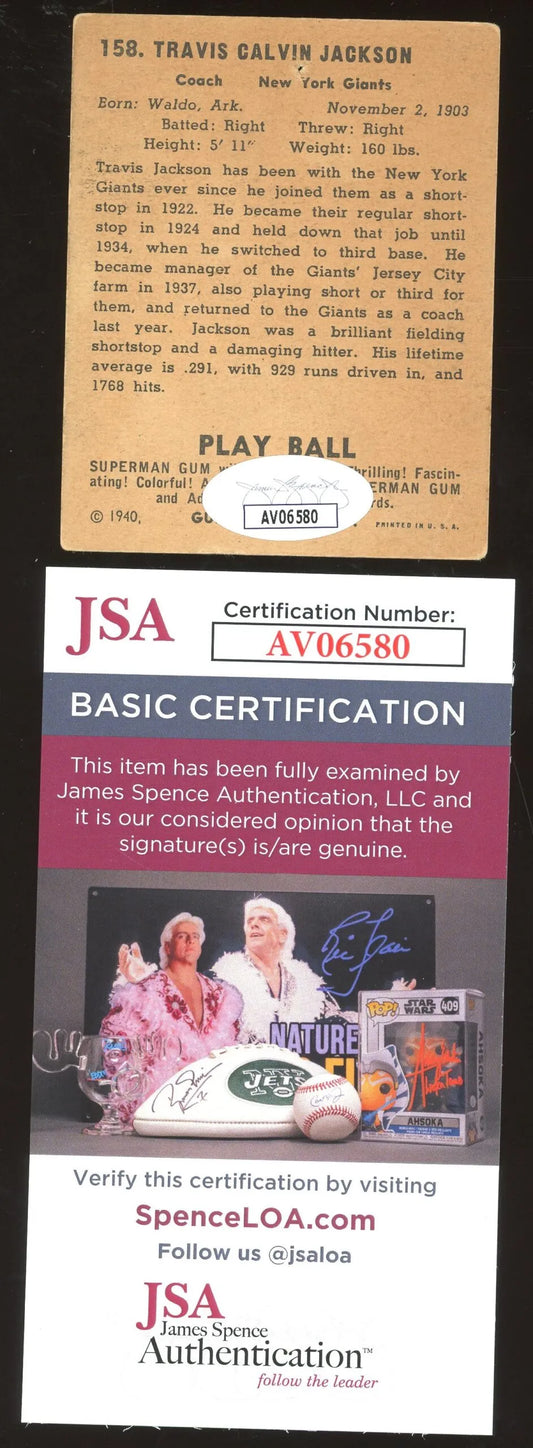 Travis Jackson ‘NY Giants 1922-36’ Signed (JSA COA) 1940 Play Ball Card #158