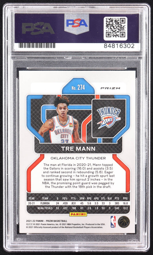 Tre Mann Signed 2021-22 Panini Prizm Prizms Ice #274 RC (PSA | Auto 10) Rookie Card
