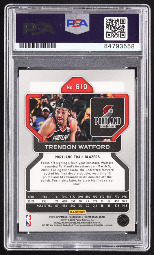 Trendon Watford Signed 2021-22 Panini Chronicles #610 RC / Prizm Update (PSA | Autograph Graded PSA 10) Rookie Card