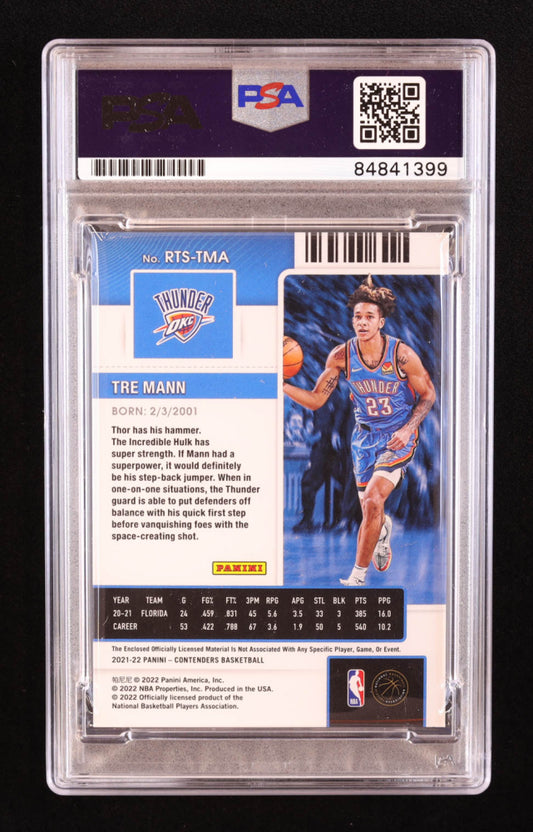 Tre Mann Signed 2021-22 Panini Contenders Rookie Ticket Swatches #RTSTMA RC (PSA) - Rookie Card