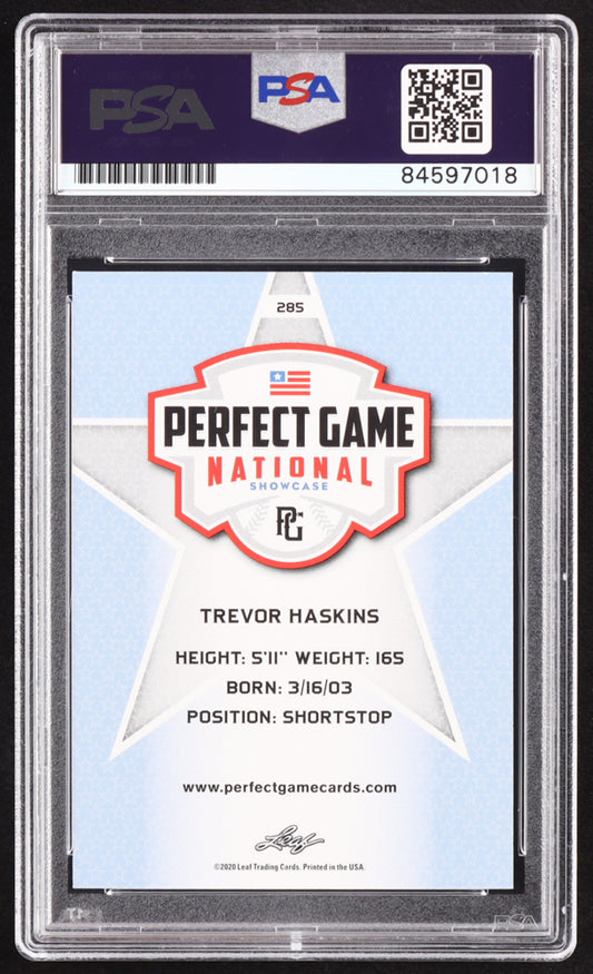 Trevor Haskins Signed 2020 Leaf Perfect Game National Showcase #285 RC (PSA | Autograph Graded PSA 10) Rookie Card