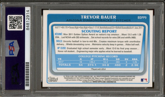 Trevor Bauer Signed 2011 Bowman Chrome 1st Bowman #BDPP9- PSA Authentic - Rookie Card