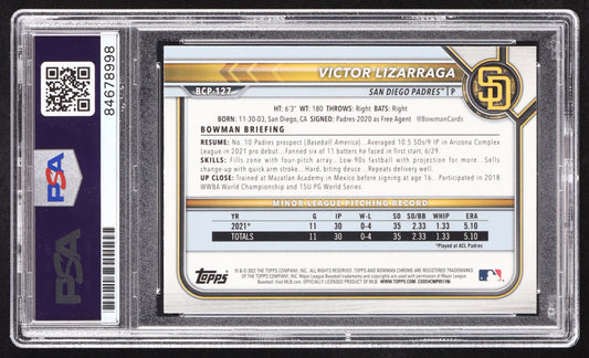 Victor Lizarraga Signed 2022 Bowman Chrome Prospects #BCP127 RC (PSA | Auto 10) Rookie Card
