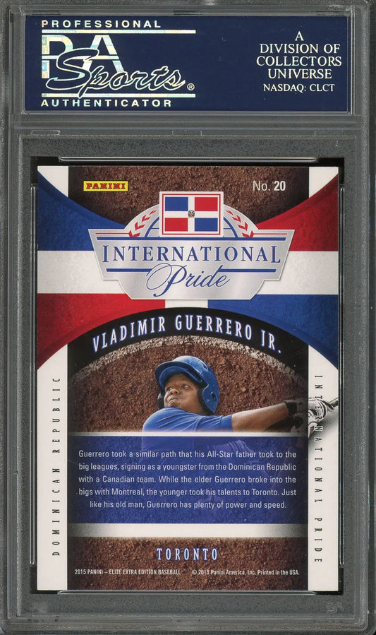 Vladimir Guerrero Jr. Signed 2015 Donruss Elite Extra Edition International Pride #20 RC - PSA/DNA - Rookie Card