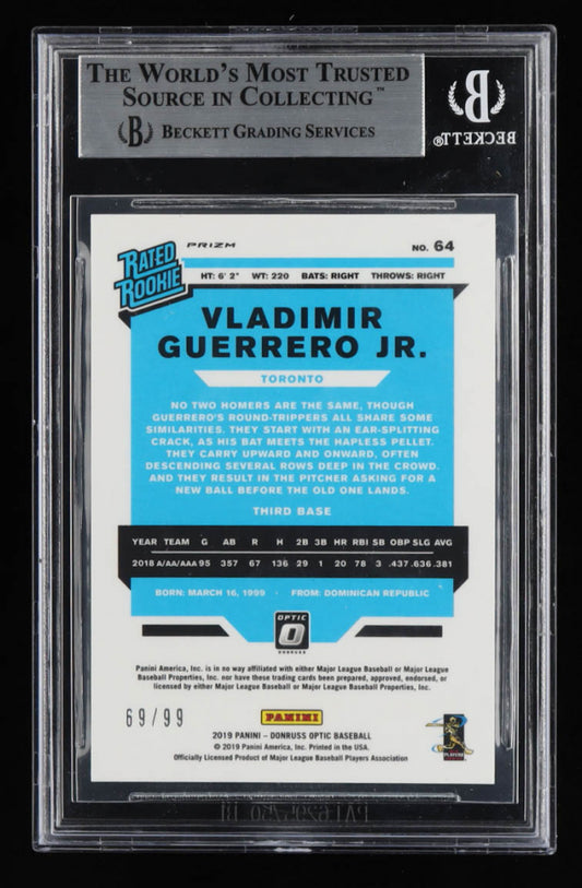 Vladimir Guerrero Jr. Signed 2019 Donruss Optic Blue Pandora #64 RR Serially Numbered #69/99 (BGS) - Rookie Card