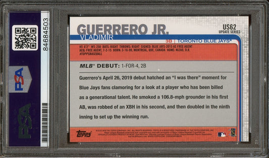 Vladimir Guerrero Jr. Signed 2019 Topps Update Rookie Debut #US62 - Auto Graded Gem Mint 10 (PSA/DNA Encapsulated) - Rookie Card