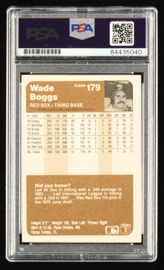 Wade Boggs Signed 1983 Fleer #179 - Autograph Graded PSA 10 - Rookie Card