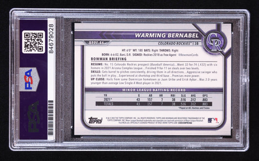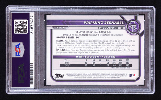 Warming Bernabel Signed 2022 Bowman 1st Edition #BPPF46 RC (PSA | Auto 9) Rookie Card