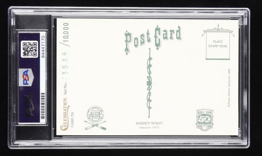 Warren Spahn Signed Braves 3.5x5.5 LE Perez Steele Galleries Hall of Fame Postcard (PSA Encapsulated) Limited Edition # 3,536 / 10,000