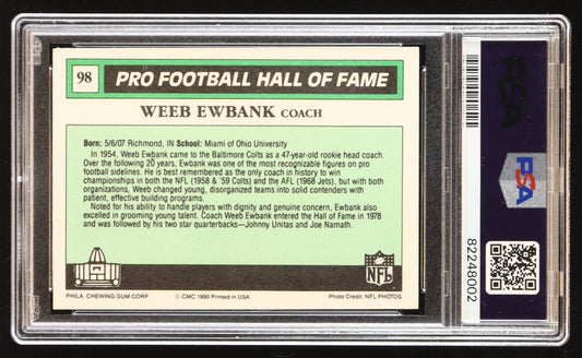 Weeb Ewbank Signed 1990 Swell Greats #98 (PSA | Autograph Graded PSA 10)