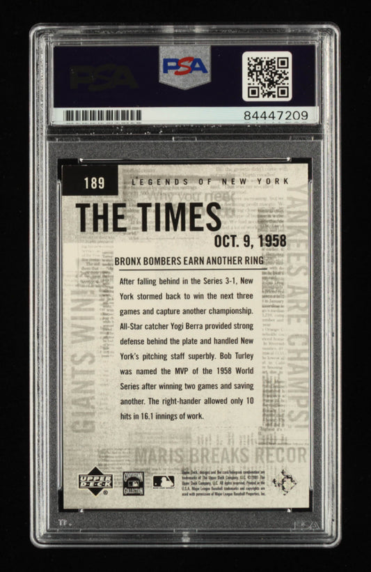 Yogi Berra Signed 2001 Upper Deck Legends of NY #189 TT - Autograph Graded PSA 10