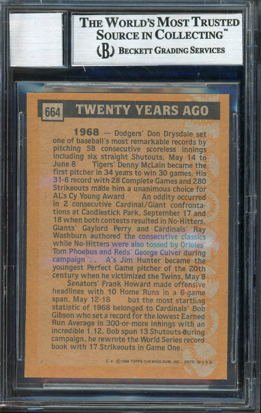 Bob Gibson Signed 1988 Topps Turn Back the Clock Baseball Card #664 - Auto Graded 10 - (BAS Encapsulated)