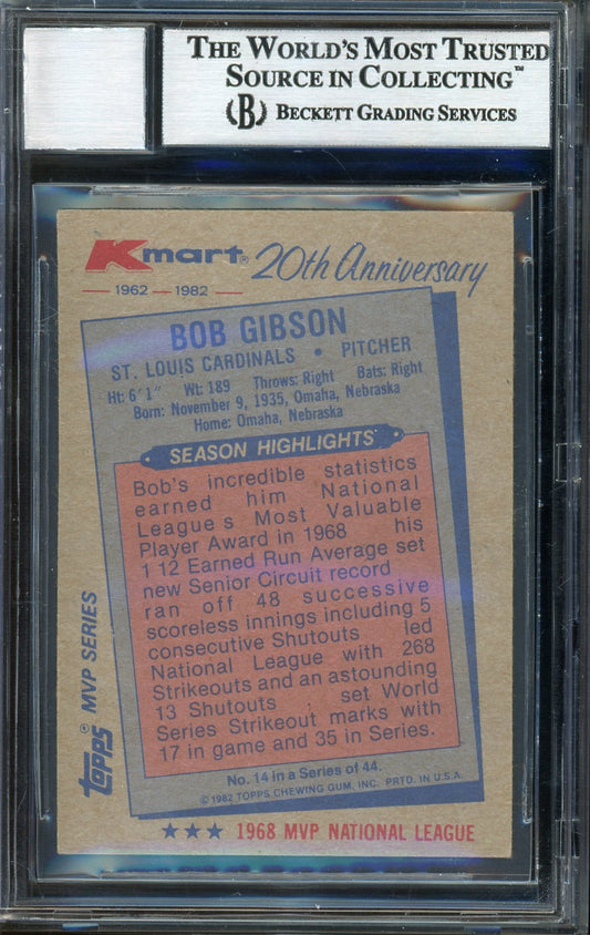 Bob Gibson Signed 1982 Topps K-Mart Baseball Card #14 - Auto Graded 10! (BAS Encapsulated)