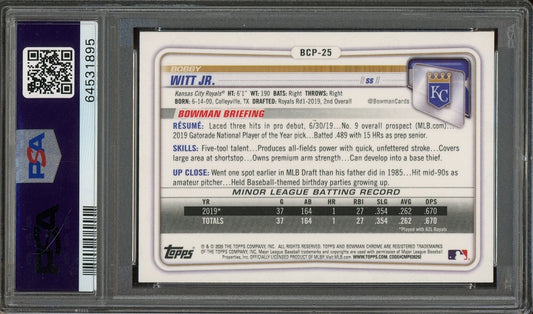 Bobby Witt Jr. Signed 2020 Bowman Chrome Prospects 1st Bowman RC #BCP25 - Auto Graded 10 (PSA/DNA) - Rookie Card