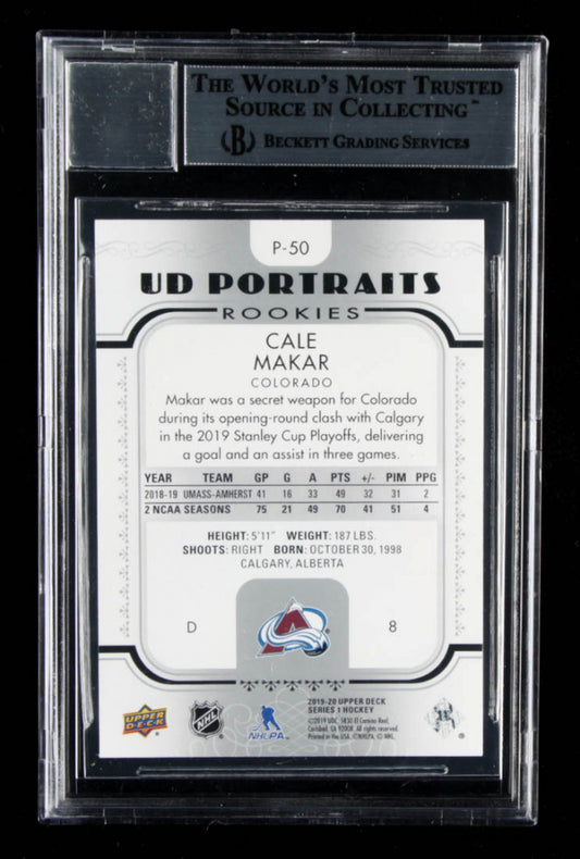 Cale Makar Signed 2019-20 Upper Deck UD Portraits #P50 - Rookie Card- Autograph Graded Beckett (BGS) 10