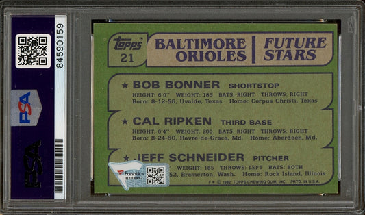Cal Ripken Jr. Signed Bob Bonner / Cal Ripken / Jeff Schneider 1982 Topps #21 (PSA & Fanatics) Rookie Card - Autograph Graded PSA 10