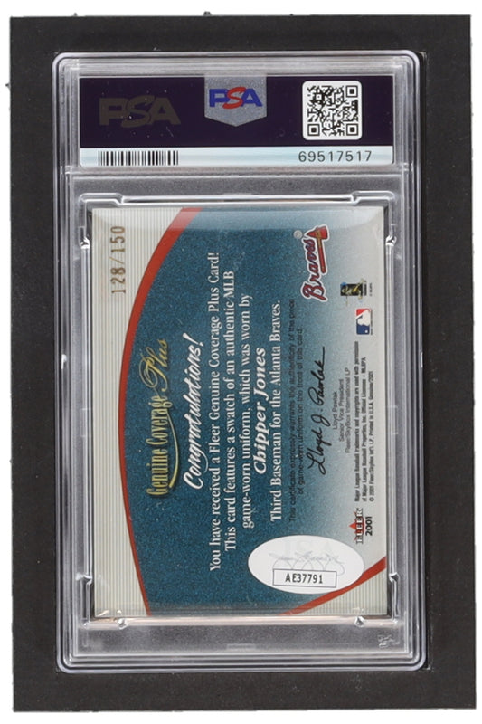 Chipper Jones Signed 2001 Fleer Genuine Coverage Plus #8 - #128/150 (PSA 6) - Autograph Graded (PSA) 10