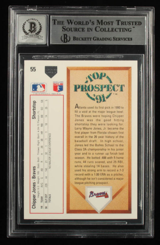Chipper Jones Signed 1991 Upper Deck #55 - Autograph Graded Beckett (BGS) 10 - Rookie Card