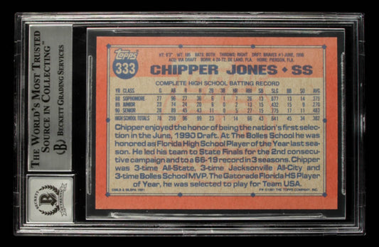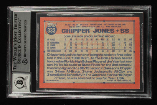 Chipper Jones Signed 1991 Topps #333 - Autograph Graded Beckett (BGS) 10 - Rookie Card