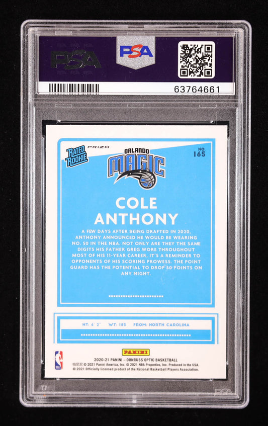 Cole Anthony Signed 2020-21 Panini Donruss Optic Holo #165 RR RC (PSA | Auto 10) Rookie Card