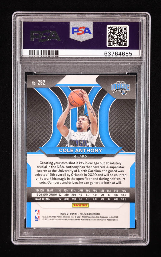 Cole Anthony Signed 2020-21 Panini Prizm Prizms Silver #292 RC (PSA | Auto 10) Rookie Card