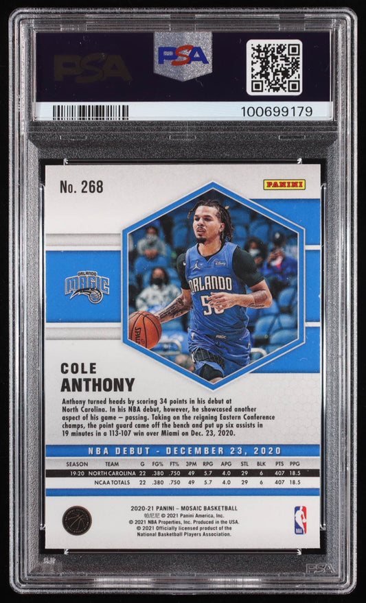 Cole Anthony Signed 2020-21 Panini Mosaic #268 RC (PSA 9 | Auto Grade PSA 10) Autograph Graded PSA 10 | Rookie Card