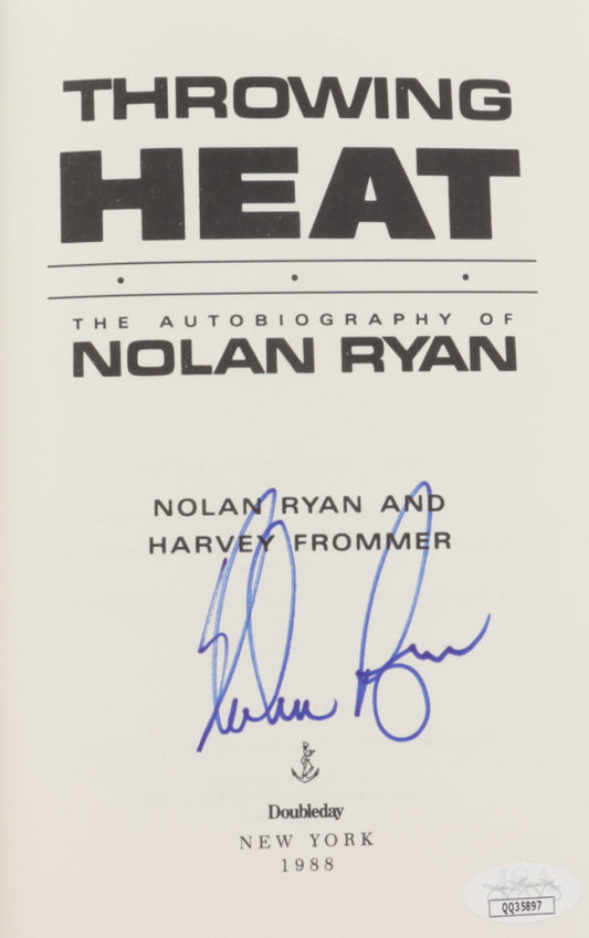 Nolan Ryan Signed (JSA COA) "Throwing Heat: The Autobiography Of Nolan Ryan" Hardcover Book