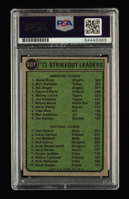 Nolan Ryan Signed 1974 Topps #207 Strikeout Leaders / Nolan Ryan / Tom Seaver Inscribed "11X K King" - Autograph Graded PSA 10
