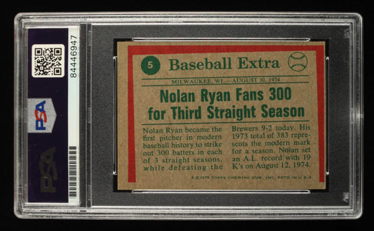 Nolan Ryan Signed 1975 Topps Mini #5 Inscribed "11x K King" - Auto Grade PSA 10