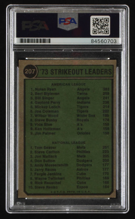 Nolan Ryan Signed Nolan Ryan / Tom Seaver 1974 Topps Strikeout Leaders #207 - Autograph Graded PSA 10