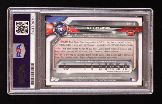 Nate Pearson Signed 2018 Bowman Draft #BD118 RC (PSA) - Rookie Card