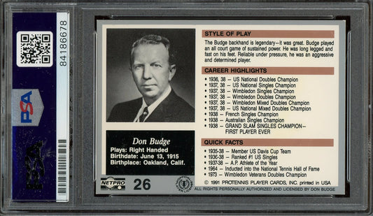 Don Budge Signed 1991 Net Pro The Legends #26 (PSA)