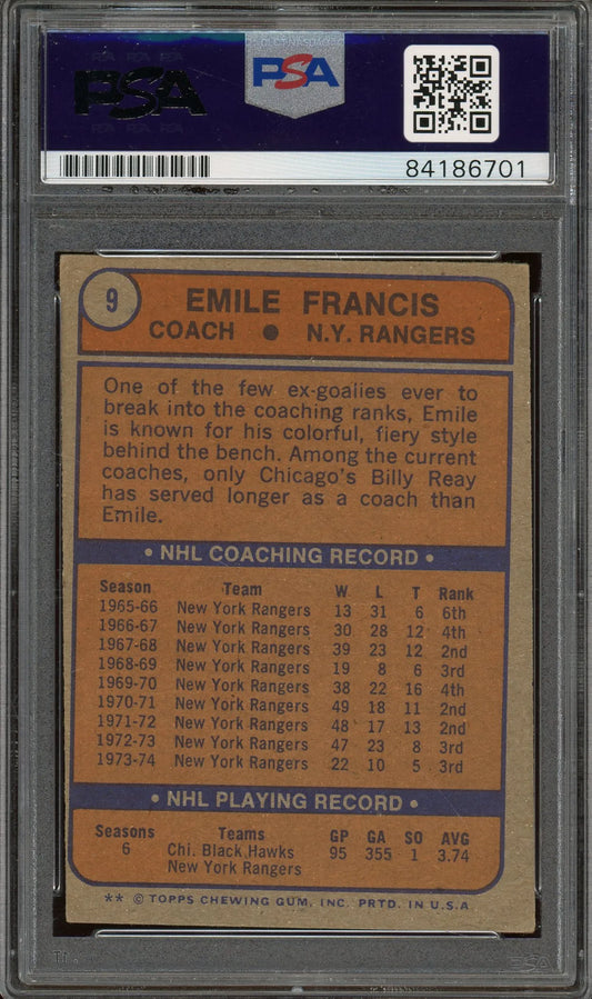 Emile “Cat” Francis Signed 1974 Topps Hockey Card #9 (PSA/DNA)